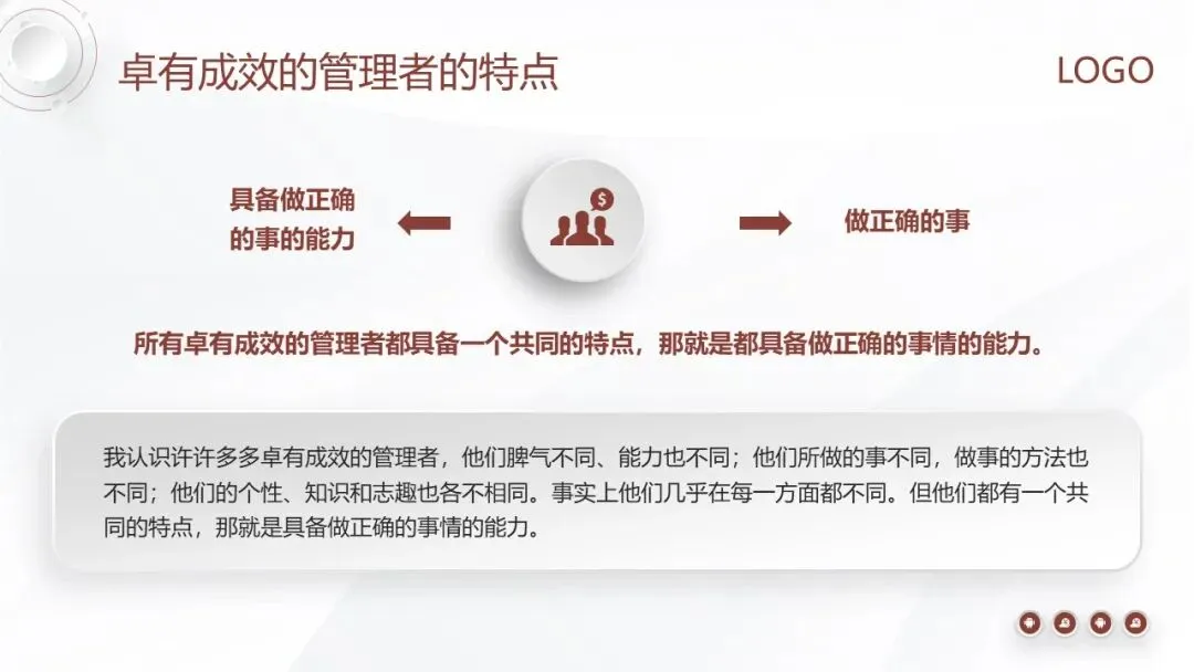 卓有成效的管理者性格各异、能力不同,但他们都具备一个共同特质—— 拥有做正确事情的能力。这种能力不是天生的,而是后天培养的习惯,是一系列实践行为的综合体现。
