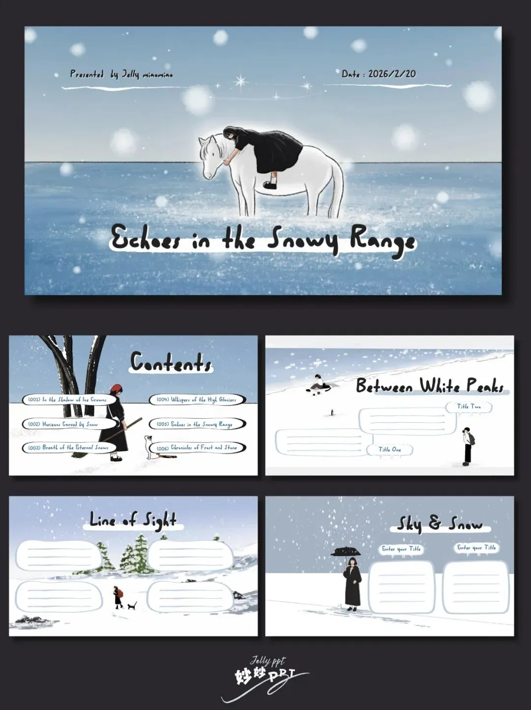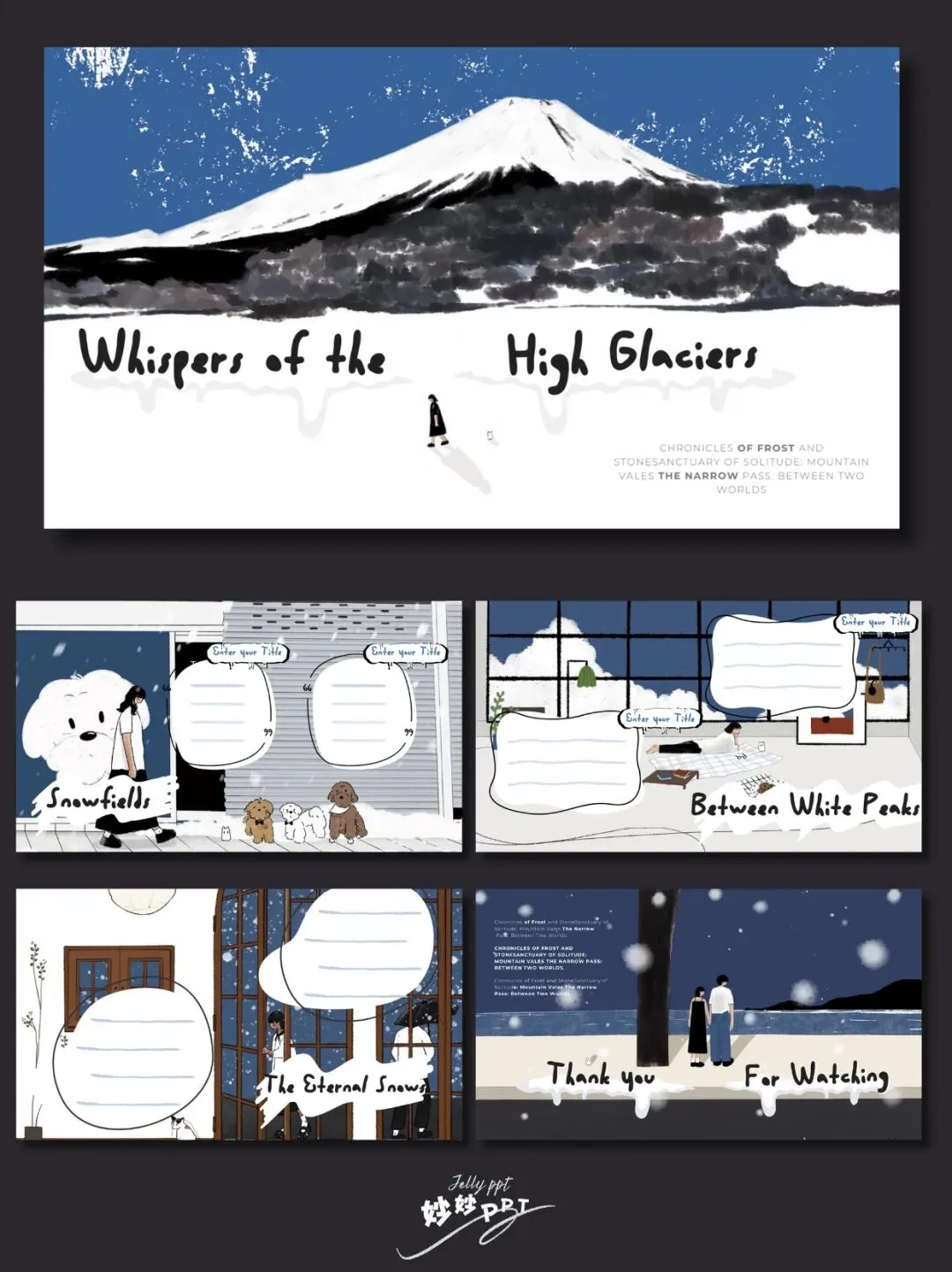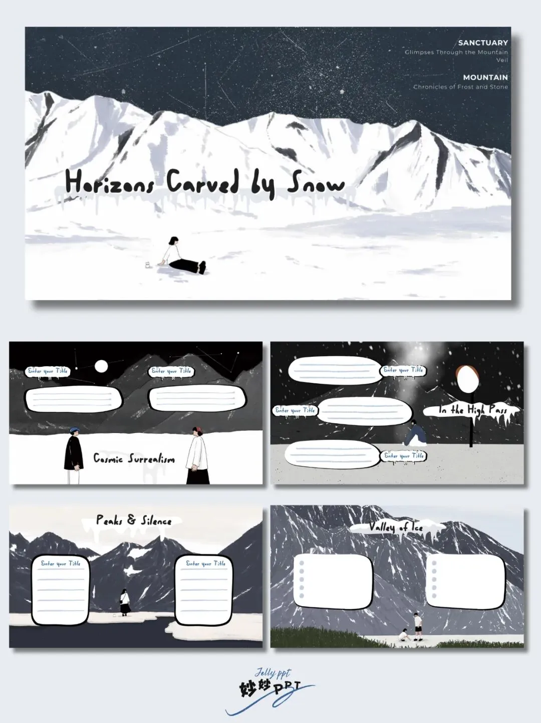 291|雪山之间 插画风PPT|冬日ppt|绘本ppt|ppt课件|PPT模板