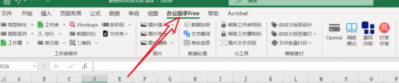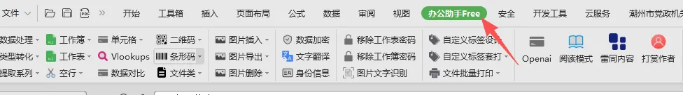 安装完毕后,看一下自己的办公表格软件,会出现一个(办公助手free)的选项,就是安装的本款插件。