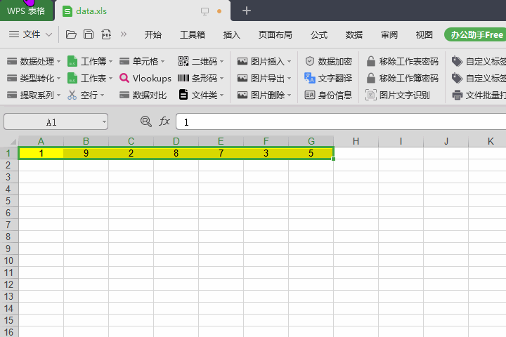 1、数据处理之横向数值排列,我在表上随便输入几个数字,只需2下就能实现数值排列,如果平常,需要选中数值、右键排序、点击升序或者降序,这个是三步,不要小看一步,一次剩一秒,那就是效率提升。