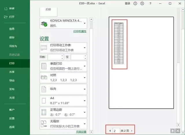 想要表格打印在一页中,需做1个简单设置: