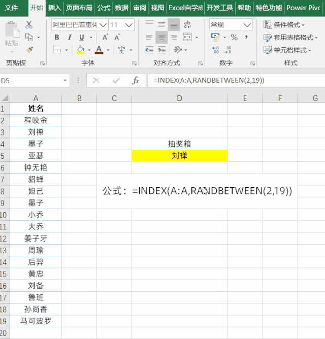 当需要制作抽奖时,可使用Excel公式简单制作一个,将名单放于A列,输入公式: