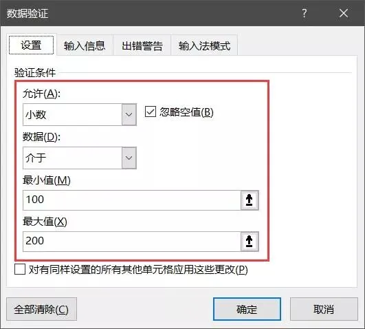 仅允许输入介于100-200之间的整数或者小数。