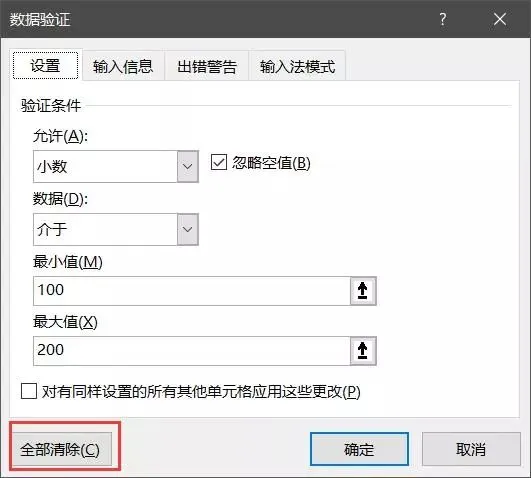 当表格中不需要这些限制时,在数据验证中,使用鼠标点击全部清除即可。