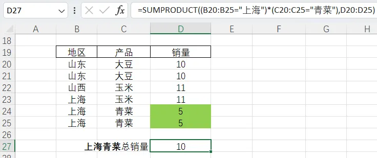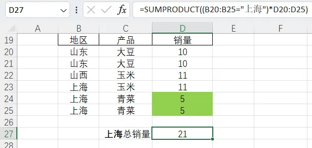 4.sumifs(求和区域,条件范围,条件)=sumproduct(条件*求和区域)