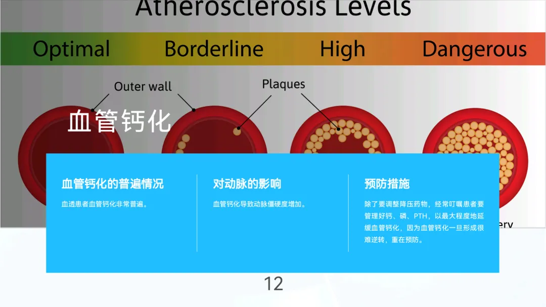 血管钙化:动脉硬化加速,需严控钙、磷、PTH以延缓进展;
