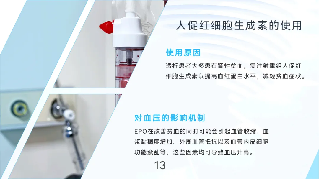 EPO使用:改善贫血但可能引发血管收缩及血液黏稠度增加;
