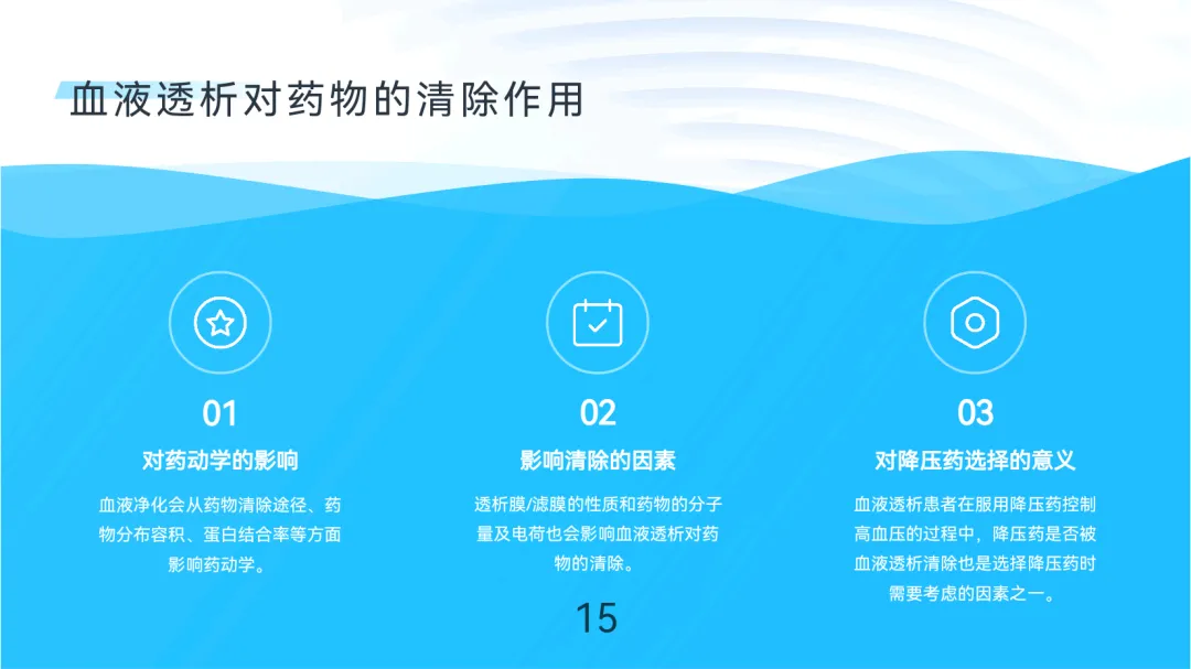 药物清除:透析可能清除降压药,需选择不易被清除的药物。