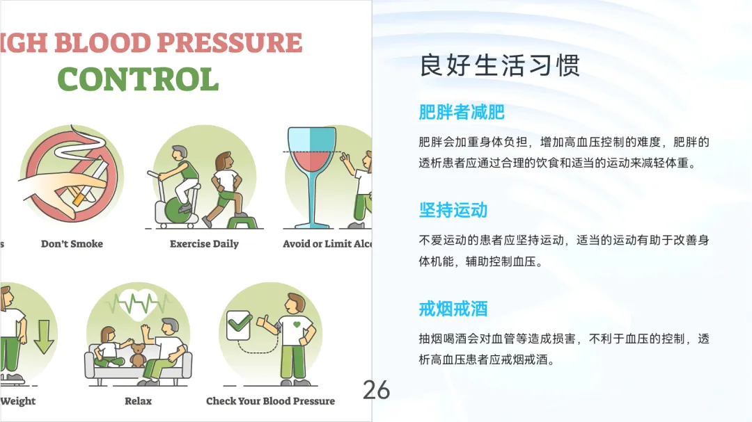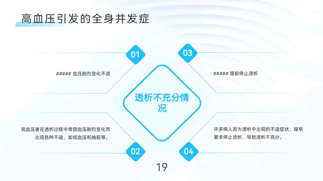 总结:血液透析高血压需以容量管理为核心,结合药物及生活方式综合干预,降低心血管风险,延缓肾病进展,提高患者生存质量。医患协作、定期评估和个体化方案是防治成功的关键。