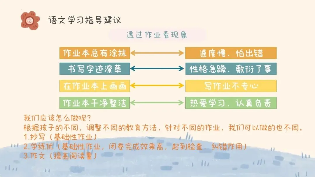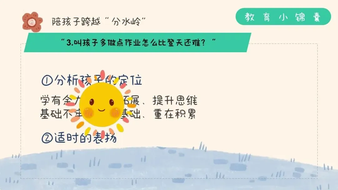 分析孩子的定位:学有余力的孩子可以适当练题拓展、提升思维;基础不牢的孩子则要扎实基础、重在积累;