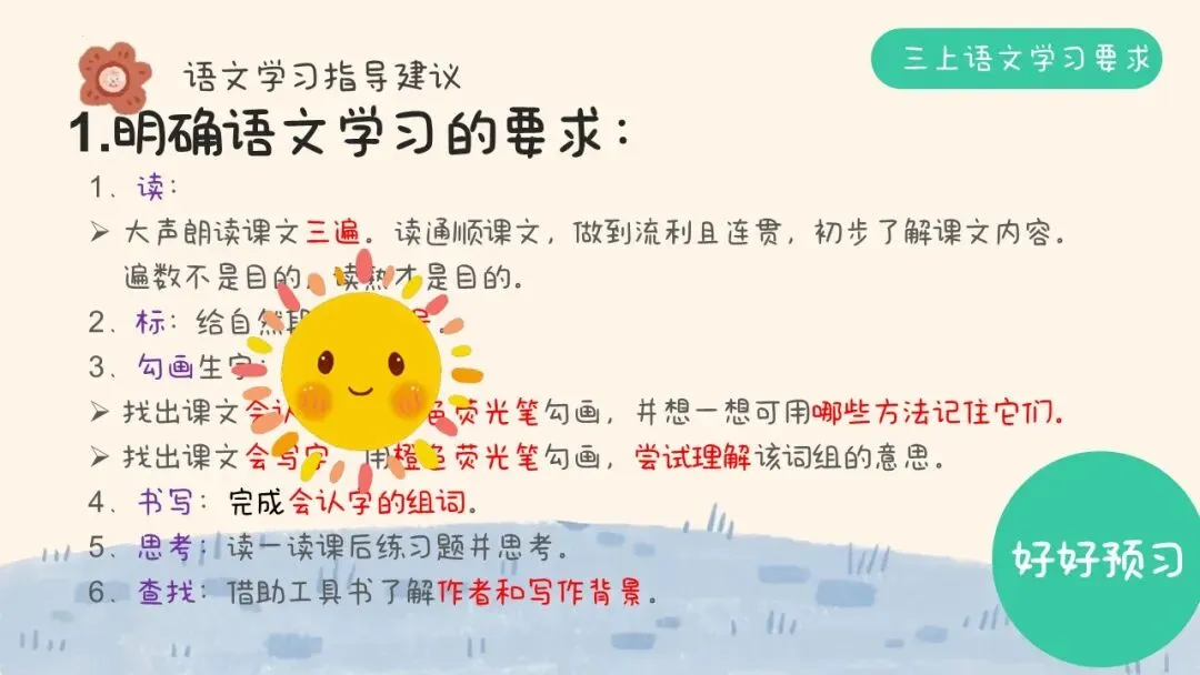 因此,我们建议孩子在语文学习上做到以下六步预习法: