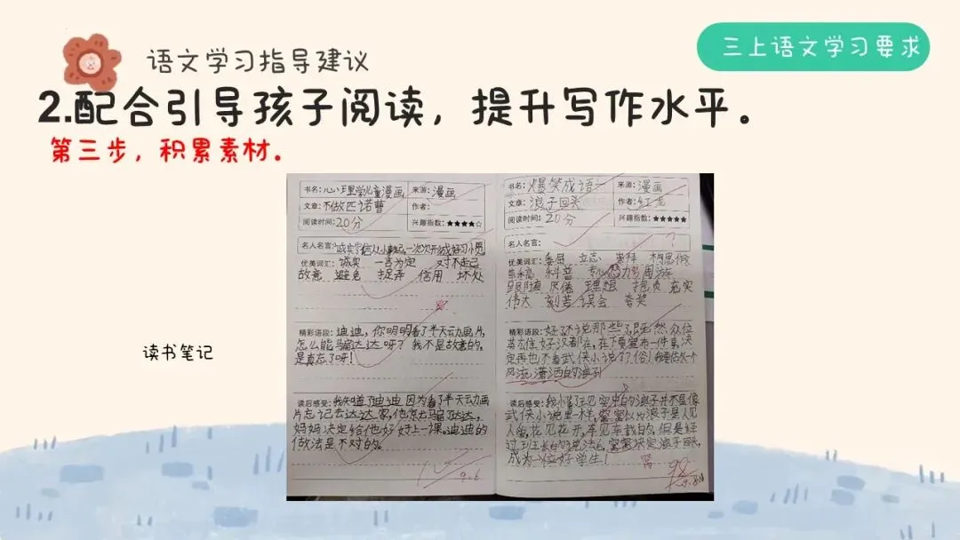 第三步,积累素材:做好读书笔记,积累好词好句。
