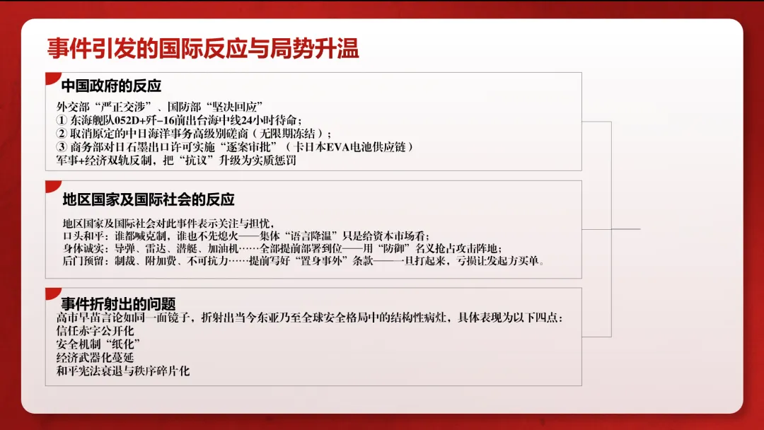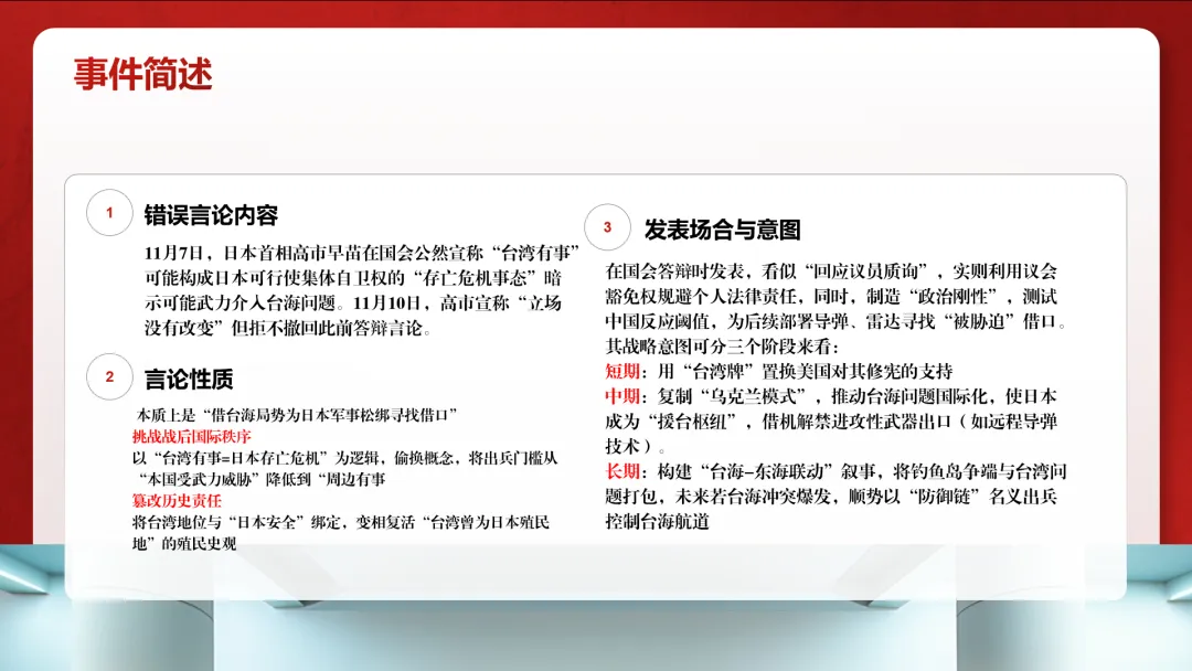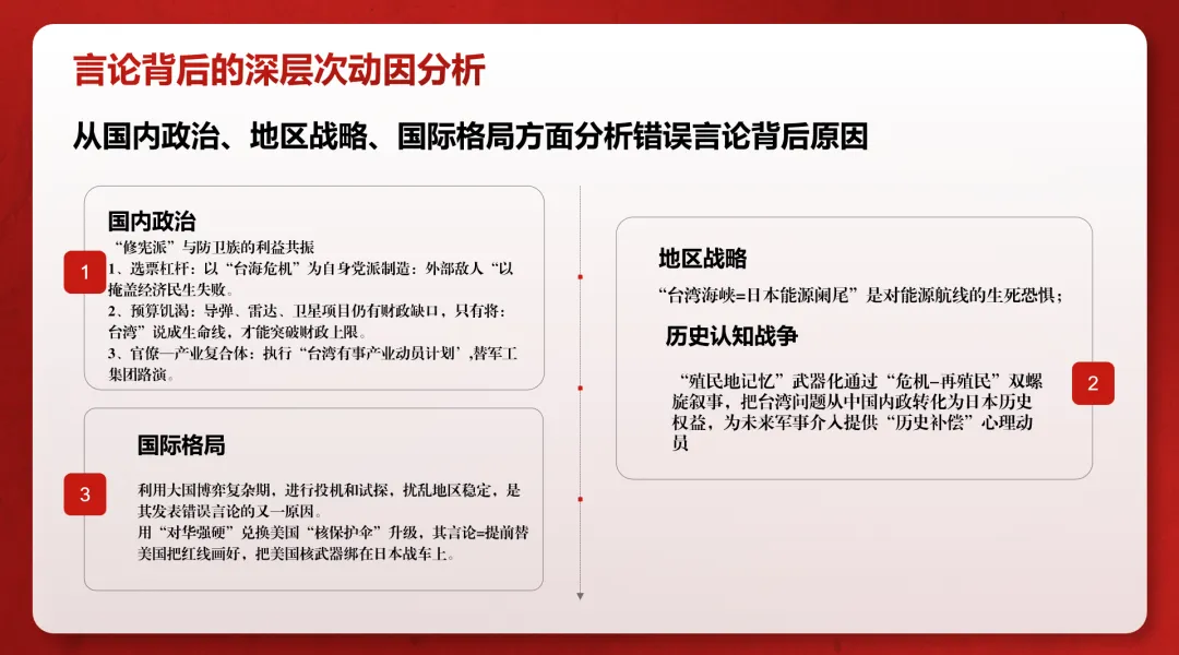 We took erroneous Taiwan-related remarks made by a political figure from a certain country as the starting point for our analysis. Such remarks not only violate the One-China Principle but also risk destabilizing the region, reflecting multiple issues such as historical misperceptions, a lack of security mutual trust, and the politicization of economic issues.