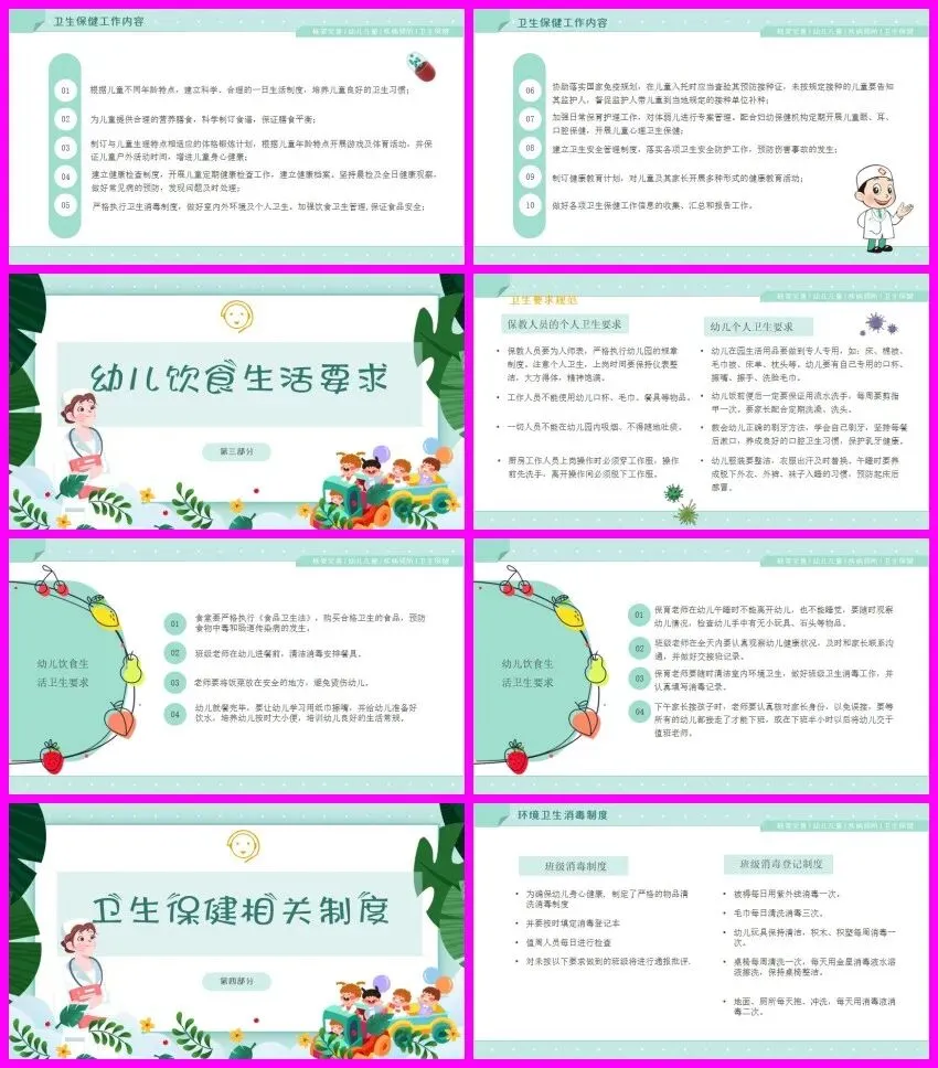 托幼机构卫生保健工作的核心方针是“保教结合,预防为主”。“保教结合”意味着我们要将教育与保育紧密结合,在日常教学活动中融入卫生保健知识,同时在保育工作中注重培养幼儿的良好习惯;“预防为主”则要求我们把疾病预防放在首位,提前做好各项防范措施,减少疾病发生的可能。