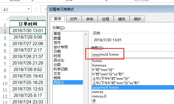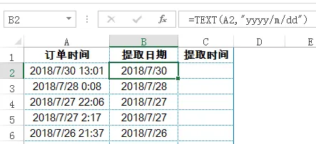 公式解析:`yyyy/m/dd`为日期格式代码,强制保留年/月/日结构(如“2018/7/30”)。