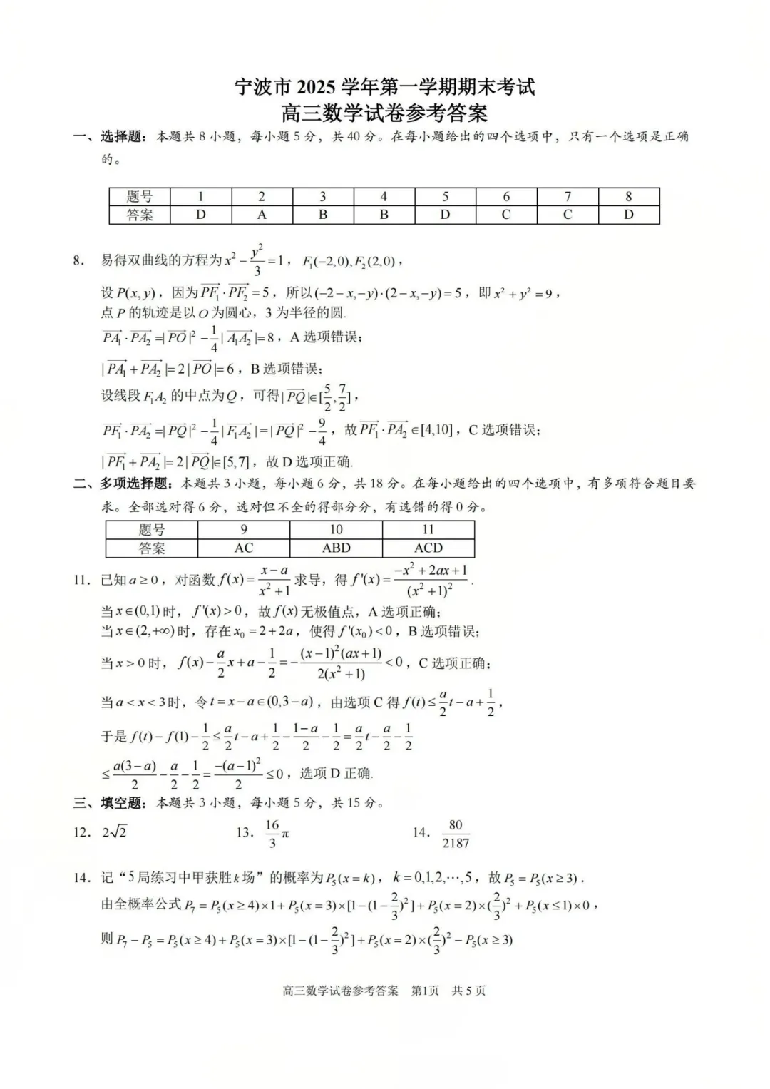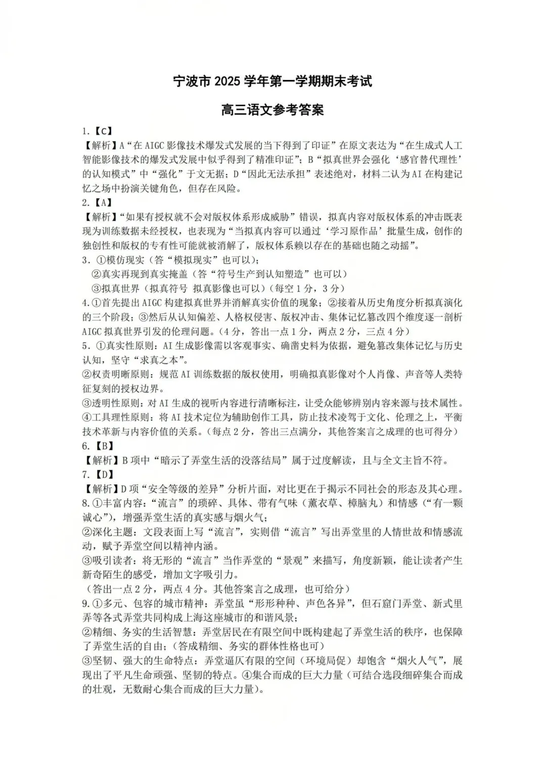 >(高三)word稿2026.1宁波市高三期末语文数学《试题》及参考答案