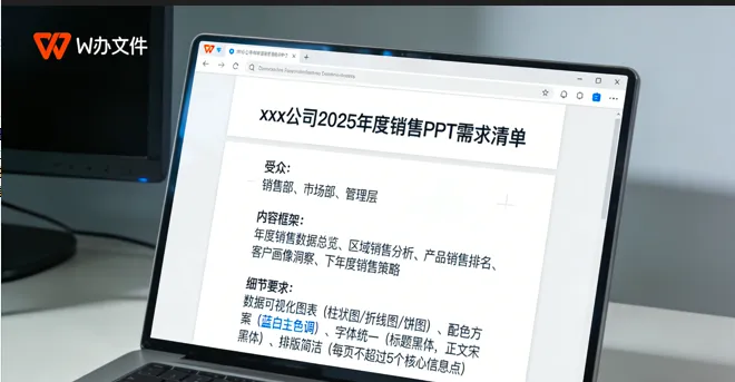 使用豆包生成PPT,第一步也是最关键的一步,就是明确需求——只有需求清晰,豆包才能生成贴合预期的内容,避免后续反复修改,这也是AI工具高效的核心前提之一。结合本次紧急任务,黎明围绕xxx公司2025年度销售情况PPT的核心用途,明确了三大核心需求,精准锚定PPT的方向和内容。