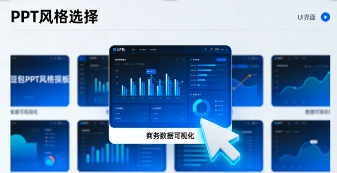 豆包根据黎明指令中的“商务简约风、蓝色主色调、客户汇报场景、xxx公司品牌调性”,自动推荐了3套适配的PPT模板,每套模板都已预设好配色、字体、页面布局,无需手动调整:第一套模板侧重数据可视化,图表区域更大,适合重点展示xxx公司的销售数据,贴合客户关注数据的需求;第二套模板侧重品牌呈现,封面和每页页眉都预留了LOGO位置,强化xxx公司的品牌辨识度;第三套模板侧重简洁大气,文字排版更紧凑,适合页数较少的汇报场景。