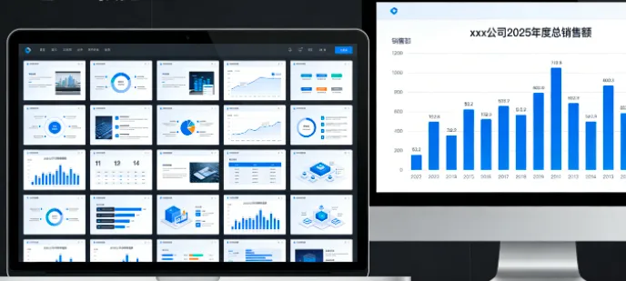 挂了电话,李明瞬间压力倍增。他心里清楚,手工制作一份符合要求的销售PPT,要耗费大量时间:首先得梳理2025年度总销售额、目标完成率、各产品线占比、区域销售表现等繁杂数据,确保数据无误;接着要找贴合客户汇报场景的商务模板,避免排版杂乱;然后得手动制作柱状图、饼图等数据图表,让数据更直观;最后还要调整字体、配色、页面顺序,反复核对细节,全程下来至少要加班3-4小时,不仅疲惫,还容易出现疏漏。