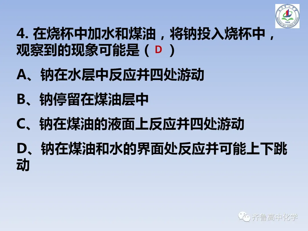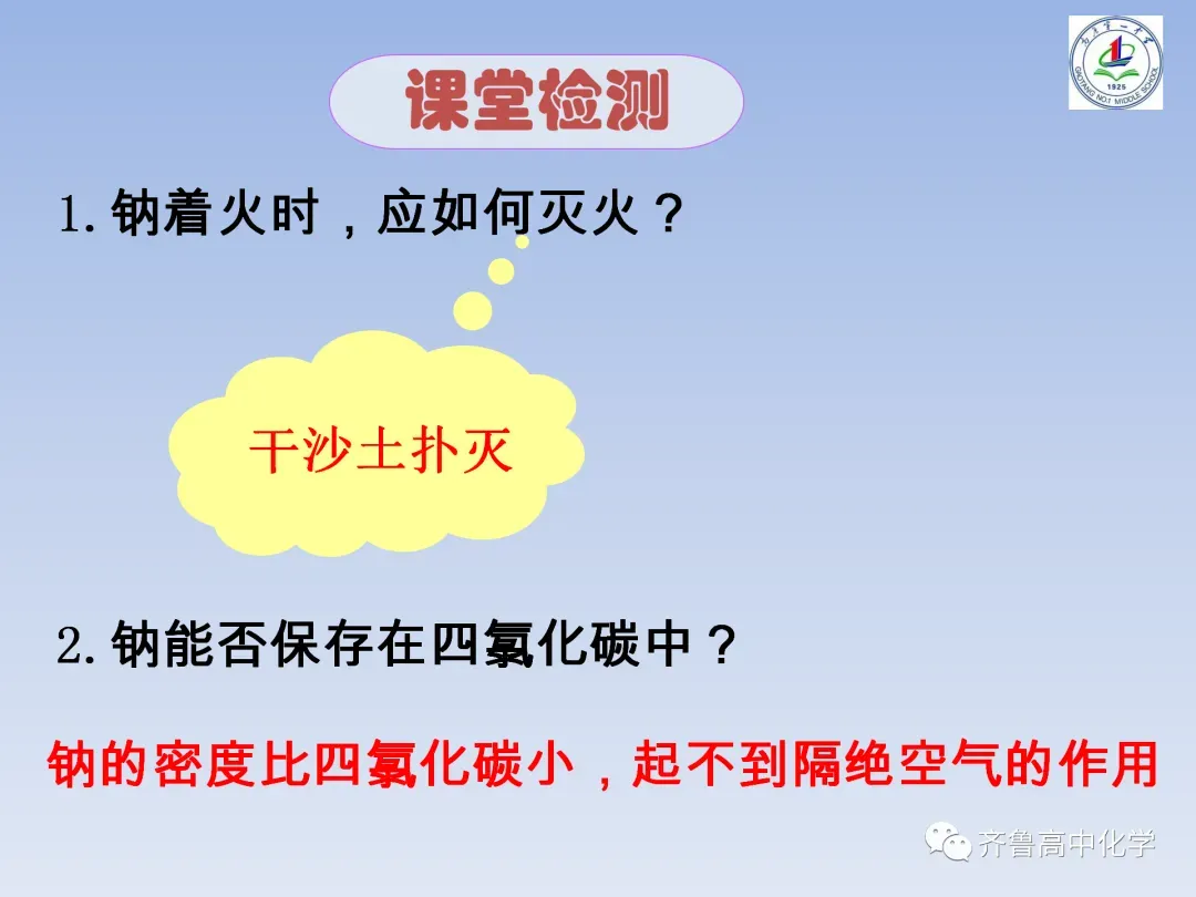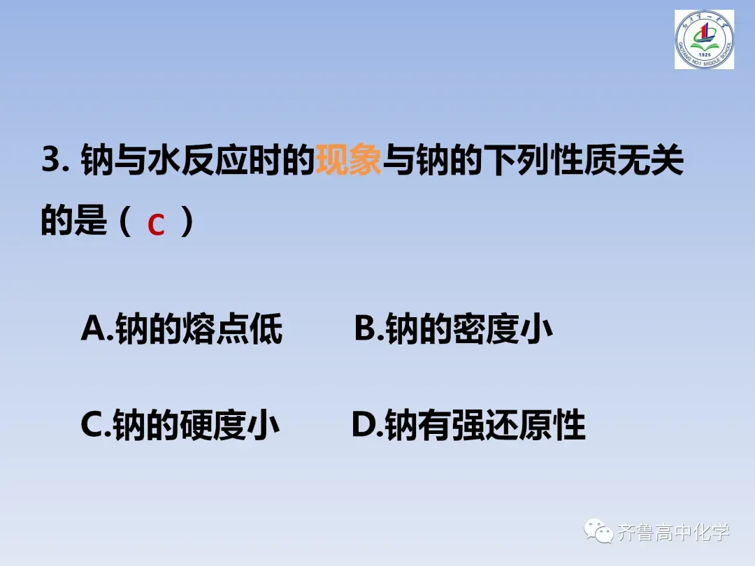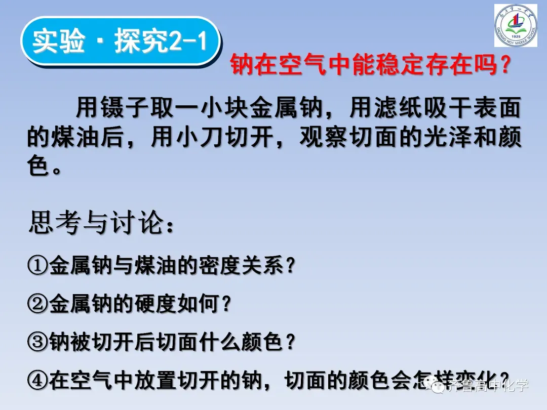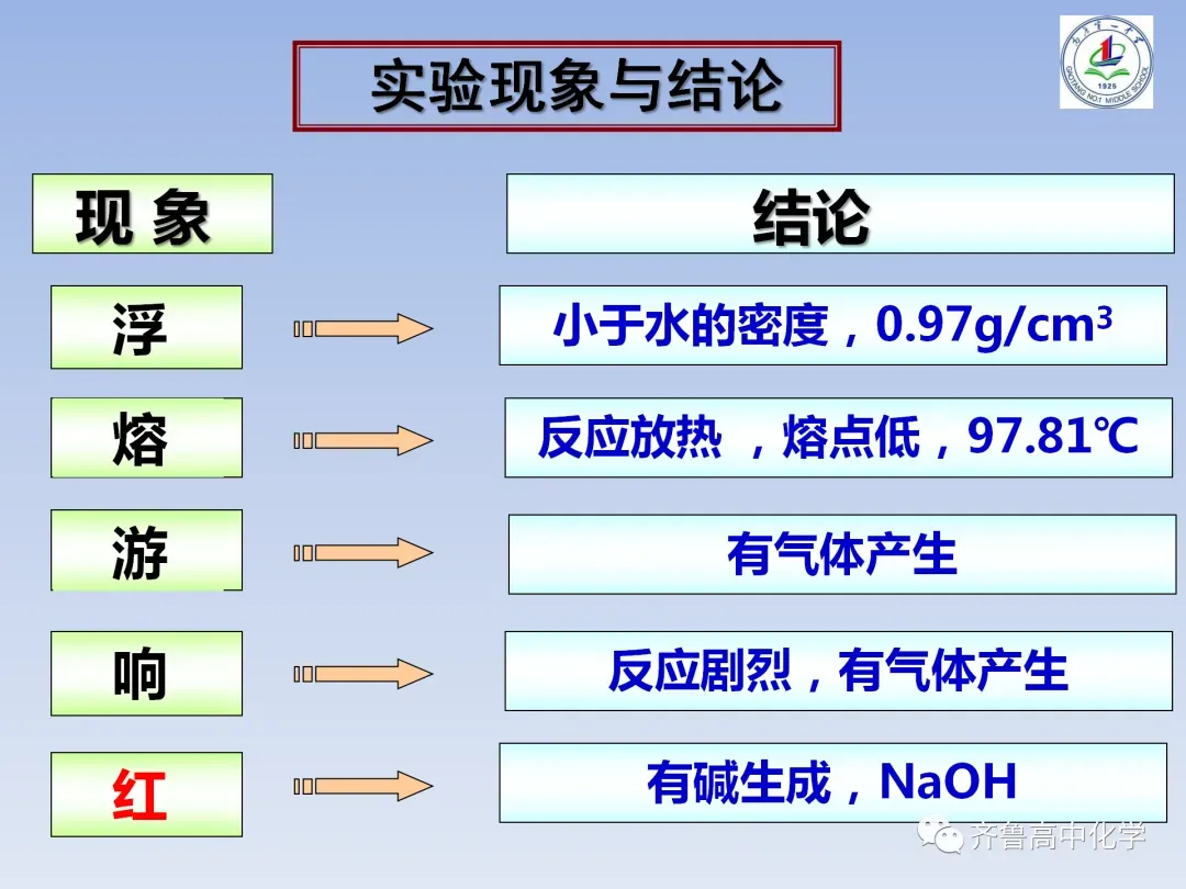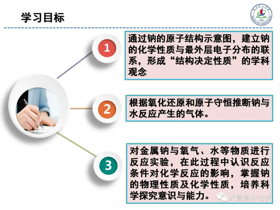 教师的整体节奏把握较好,授课流程流畅,课堂容量适中,课堂气氛比较活跃,师生互动良好。在精心设计的环节下,本节课基本完成了教学目标,学生反映良好,大多数同学能较好的认识总结出金属钠的性质,带着问题去学习,学会了如何进行实验探究的基本方法。另外,整节课凸显以学生为主体,教师为指导,问题为主线,思维为主攻,给学生留出了更多的自主时间,“逼迫”学生思考,努力完成学习任务,与同学组成合作小组,完成探究。学习方式的转变不仅体现了教学过程中学生的主体地位,也是养成学生独立思考、发挥学习潜能,同时又培养了其合作意识和团队意识。重点突出课堂实验,鼓励学生积极动手做实验,在化学实验中引导学生学会动手、学会观察、学会思考、发现并解释或解决相关问题并学会表达与交流。切实培养了学生的创新精神和实践能力,充分体现化学课程的人文内涵。