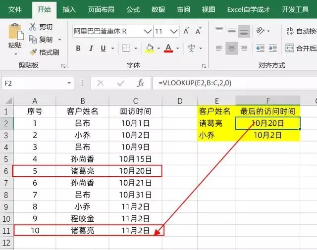 如下表,左边是客户信息表,需查找出客户最后的回访时间。