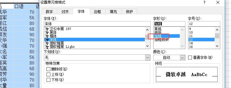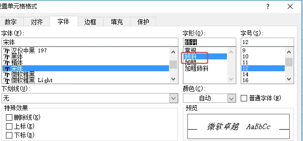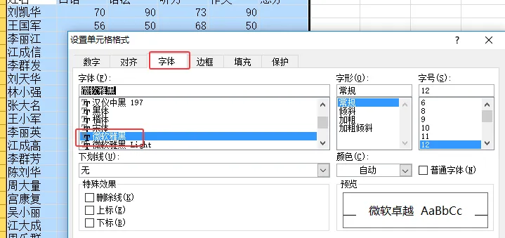 ②右键单元格 → “设置单元格格式” → “字体”选项卡 → 字体列表 切换文字的字体样式(如宋体适合正式文档,微软雅黑更清晰)