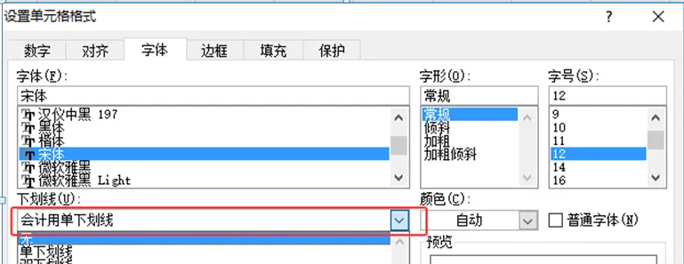 Excel字体下划线方法② 同上“设置单元格格式” → “字体” → 下划线下拉菜单 为文字添加下划线(默认单下划线,可选双下划线、会计用下划线等),当然我们也可以使用 快捷键Ctrl + U 把字体加下划线。