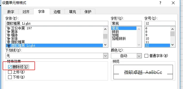 添加删除线方法:右键“设置单元格格式” → “字体” → 勾选“删除线” ,为文字添加贯穿线(表示作废、修改前内容) 数据修改记录、作废条目