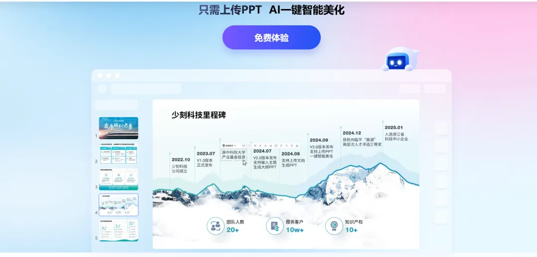 使用体验:作为最早接触的智能PPT工具,AIPPT已经成为我电脑里的"常驻嘉宾"。它的最大优势是"全流程智能"——从主题输入到最终导出,每个环节都有AI辅助。