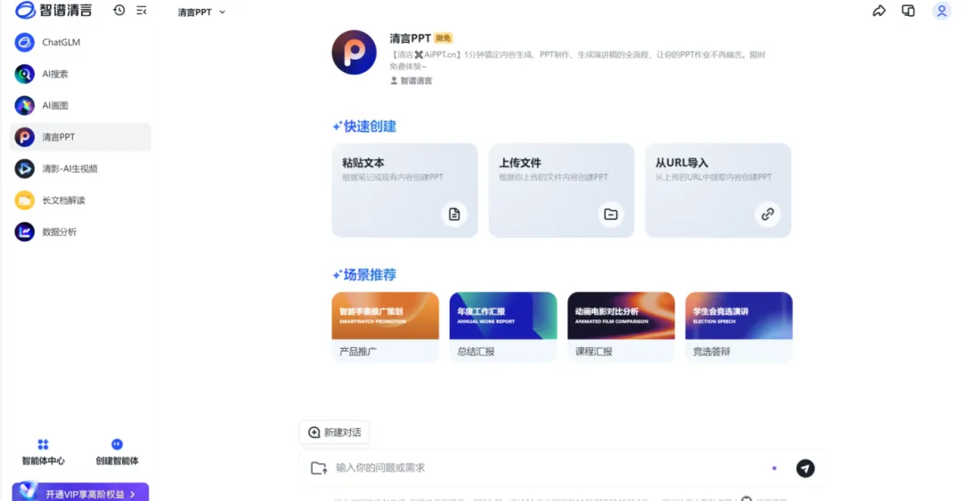 使用场景:有次临时被通知要做5分钟的项目汇报,我用清言PPT的语音输入功能,边走边说就完成了内容录入,系统自动生成了包含时间轴和里程碑的简洁PPT,最终效果超出预期。