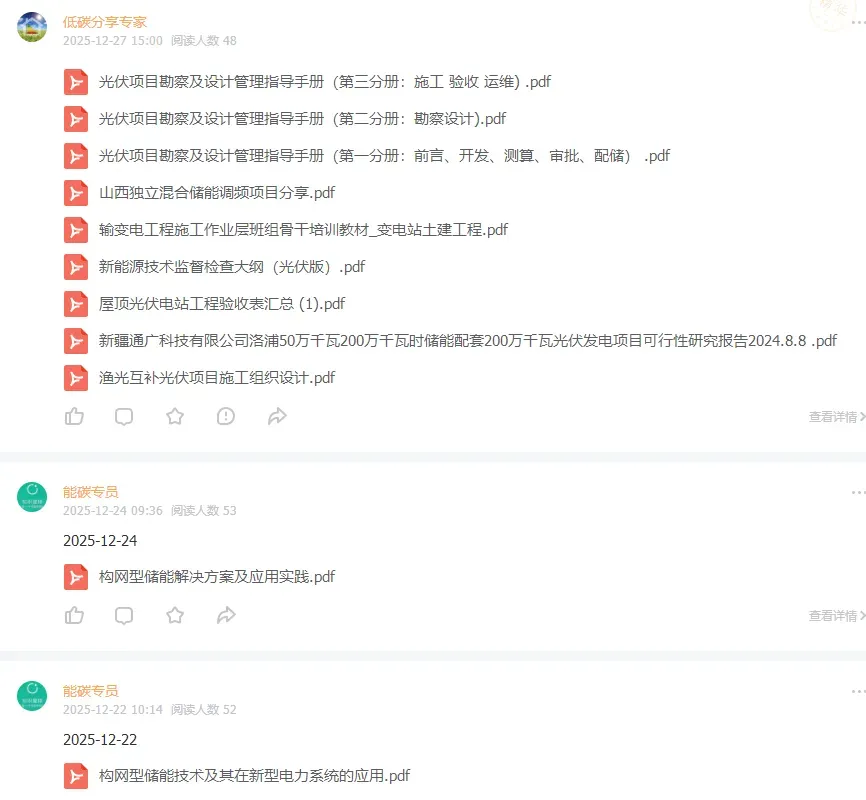 更多学习文件详见知识星球综合能源服务师资料库。这上面有各种能源相关的学习资料,比如光伏项目的计算书,储能的应用报告,源网荷储一体化系统,非常非常丰富。而且星主在不断地更新资料,非常适合热爱学习的朋友。