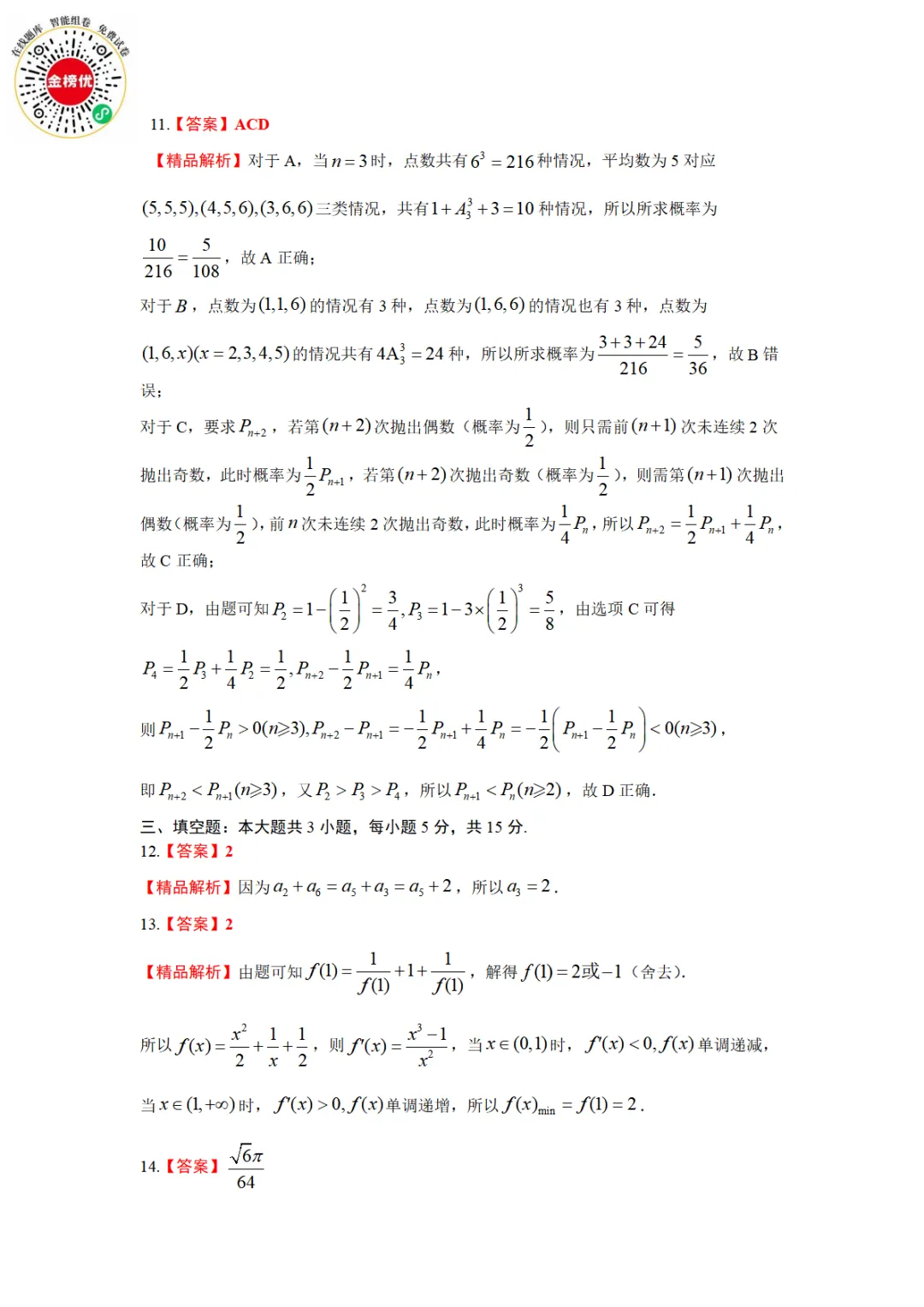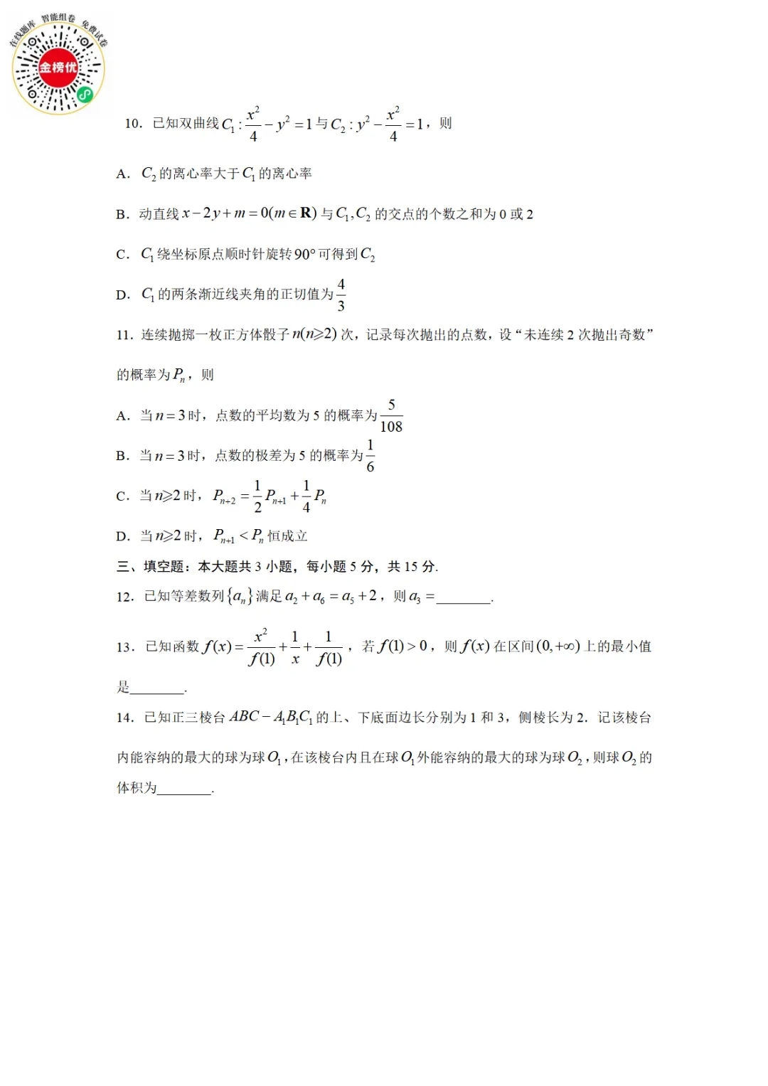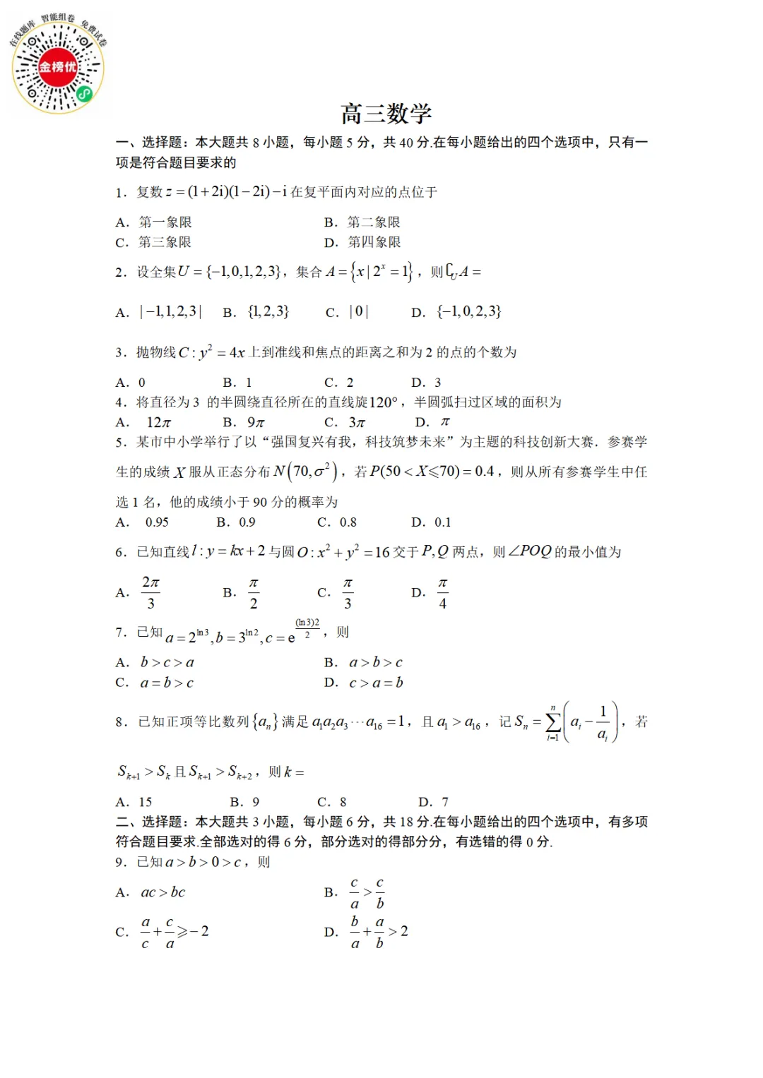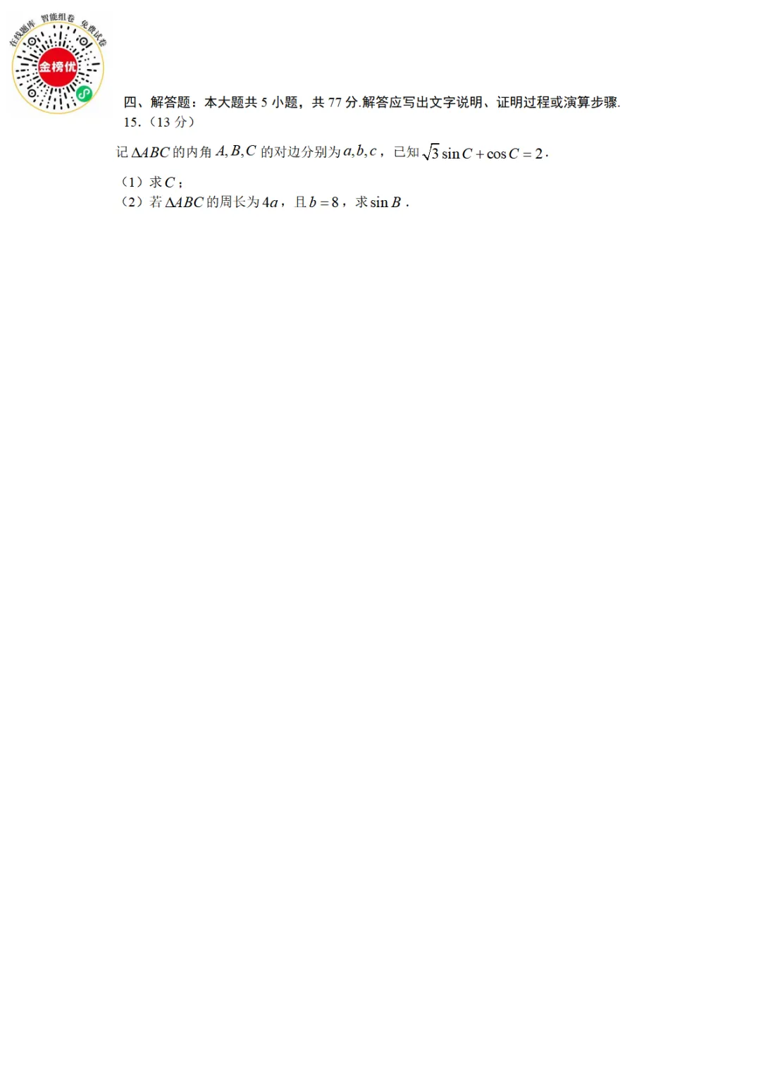>【精品word版】2026届海南高三上学期期末数学试题+答案