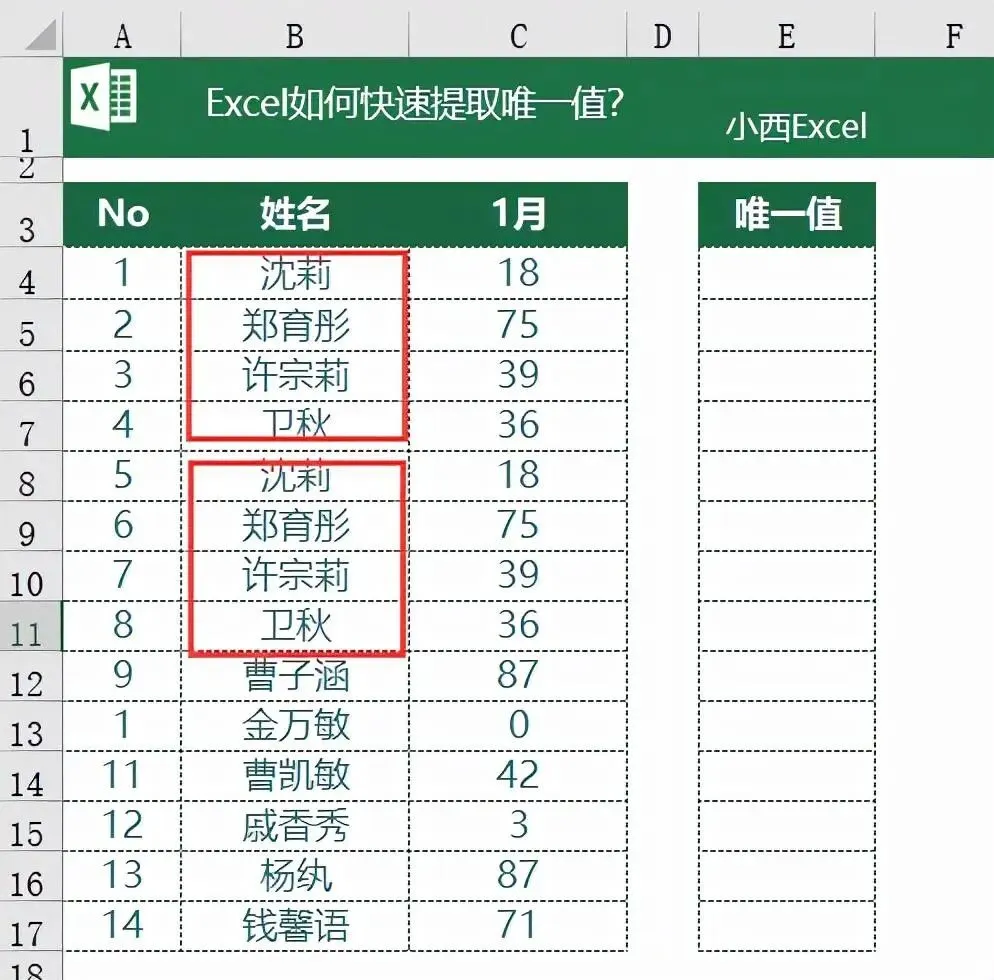 场景:客户名单、订单记录中存在重复