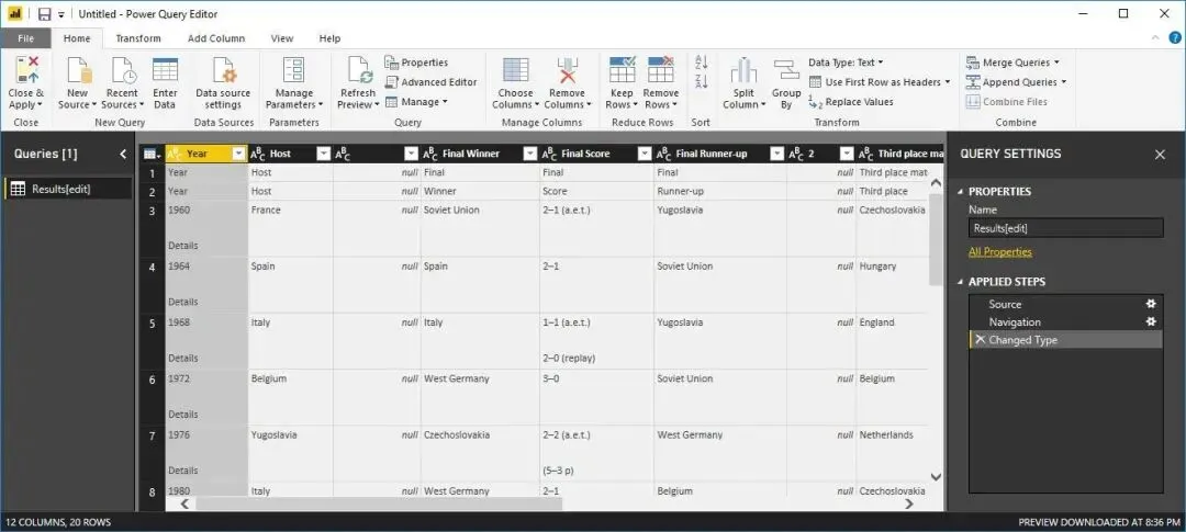 进入编辑器:数据会自动在Power Query编辑器中打开