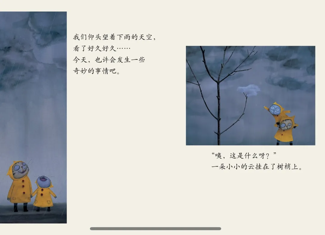 “咦,这是什么呀?”一朵小小的云挂在了树梢上。