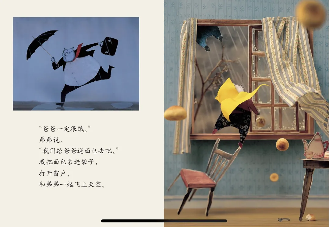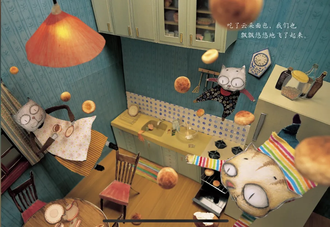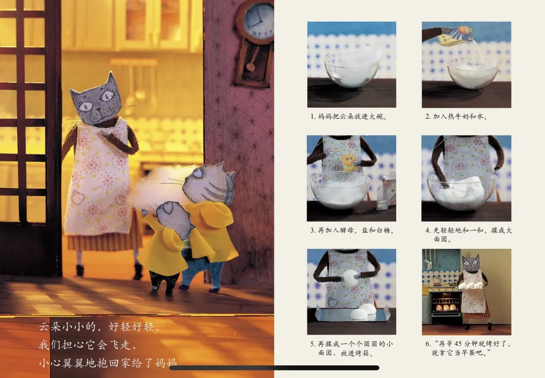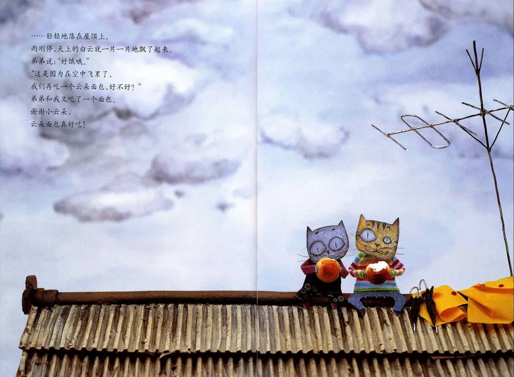 《云朵面包》是一本关于描绘家的图画书,是一个充满了神奇、浪漫和暖暖的爱的童话故事。绘本运用了多种艺术的表现手法,除了绘画外,还采用了摄影、剪纸、布贴的方法构图,让画面充满了质感,美妙而生动,有了浓浓的生活气息。