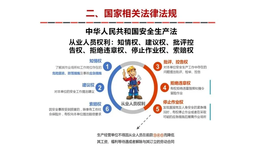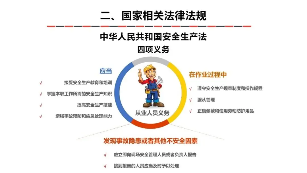 安全培训是企业和组织保障人员安全、减少事故风险、维持正常运营的核心环节,其重要性、科学方法及合理频次直接影响安全管理的效果。安全培训并非形式化流程,而是通过系统性教育提升全员安全意识与能力的关键手段,具体体现在:多数安全事故源于人为疏忽或操作不当(如违规操作、设备误操作等)。培训能让员工掌握风险识别、应急处理技能,从源头减少 “人因失误”,例如化工企业员工通过培训可精准判断危险化学品泄漏的初期征兆,避免事故扩大。生产、建筑、交通等高危行业中,员工面临触电、高空坠落、中毒等风险。培训能让员工熟悉防护装备使用(如安全帽佩戴规范、防毒面具正确穿戴)、紧急逃生路线,在事故发生时最大限度保护自身及他人安全。各国法律普遍规定企业需对员工进行安全培训(如我国《安全生产法》第二十八条明确要求 “生产经营单位应当对从业人员进行安全生产教育和培训”),未落实培训可能面临行政处罚,甚至在事故追责中承担更严重责任。事故会导致设备损坏、生产停工、赔偿费用等直接损失,还可能引发品牌声誉下降、客户流失等间接损失。据统计,有效的安全培训可使企业事故成本降低 30%-50%。长期培训能让 “安全第一” 的理念深入人心,形成员工主动遵守规程、互相监督提醒的文化氛围,从被动管理转向主动预防。培训方法需根据行业特点、岗位风险、员工基础灵活选择,避免单一化、理论化:内容:法律法规(如《安全生产法》《消防法》)、行业标准、风险点分析、安全制度等。形式:线下讲座、线上课程(如企业内网视频、学习平台),搭配 PPT、案例手册增强理解。内容:设备操作规范(如起重机械操作、机床安全操作)、应急技能(灭火器使用、心肺复苏、疏散逃生)、防护装备穿戴等。形式:现场演示 + 员工动手操作,由资深员工或专业讲师指导纠错。关键:模拟真实场景(如设置 “火灾烟雾” 环境演练疏散),确保员工在实战中掌握技能。内容:国内外同行业事故案例(如煤矿坍塌、化工厂爆炸),分析事故原因、违规环节、整改措施。形式:小组讨论、辩论赛(如 “‘违章操作’的主要责任在个人还是管理?”),让员工从案例中吸取教训。优势:模拟高危场景(如高空作业、有毒气体泄漏),员工可在安全环境中体验风险,反复练习应急处理,适合高风险行业(如石油、建筑)。场景:通过 VR 设备 “身临其境” 处理设备故障,或在 AR 指引下学习设备检修步骤。形式:班前会 5 分钟安全提醒(强调当日作业风险点)、安全知识海报 / 标语(张贴在车间、办公室)、企业微信群推送 “安全小视频”(如 1 分钟看懂 “触电急救”)。邀请应急管理部门、消防救援机构、行业专家开展专项培训(如特种设备安全、危化品管理),免费资料关注公众号:安全生产管理;或组织员工参与行业安全展会、研讨会,接触前沿安全技术与理念。频次需结合岗位风险等级、员工岗位变动、法规要求确定,核心是 “按需培训、动态调整”:新员工入职:必须进行三级安全教育(公司级、部门级、岗位级),总时长不少于 24 学时(高危行业不少于 72 学时),考核合格方可上岗。在岗员工:每年至少进行 1 次全员安全再培训,高危行业(如矿山、建筑、危化品)每半年至少 1 次。高风险岗位(如焊工、高空作业工、危化品押运员):每季度至少 1 次专项培训 + 1 次实操演练,确保技能熟练度。中风险岗位(如车间操作工、设备维修工):每半年 1 次专项培训 + 半年 1 次演练。低风险岗位(如行政、后勤):每年 1 次培训,重点关注消防、办公安全(如用电安全)。发生安全事故后:立即组织针对性培训,分析事故原因,强化相关环节的安全操作。设备 / 工艺更新后:对涉及的员工进行新设备操作、新工艺安全规程培训,考核合格方可上岗。法律法规 / 标准更新:及时组织培训,确保员工掌握最新要求(如某行业安全标准修订后 1 个月内完成培训)。员工转岗 / 复岗:转岗员工需接受新岗位安全培训;离岗 6 个月以上(高危行业 3 个月以上)的员工,复岗时需重新培训并考核。安全培训的核心是 “以员工为中心,以风险为导向”:通过多样化方法确保员工 “懂安全、会安全、要安全”,通过合理频次维持培训效果的持续性。只有将培训转化为员工的本能反应和行为习惯,才能真正实现 “预防为主,减少事故” 的安全管理目标。可在公众号【安全生产管理】后台对话框发送日期4位数字“0122”自取上方视频下载链接。