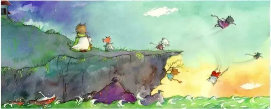 到了最后卡兰巴只好放弃。"算了",他对波西亚说,"我再也不想飞了"。"什么难道你不会飞"?壁球叫道。卡兰巴抬头往上看,他的心沉了下去,他的堂兄弟们,壁球和八哥就在她的上空盘旋,喉咙里还发出很响的咕噜咕噜声。"太奇怪了"。八哥说,"每一只猫都 懂得怎么飞"。"可卡兰巴会做别的事",波西亚说,"他会收集毛毛虫,会讲故事,还会做美味的奶酪煎蛋饼"。"但它不会飞"。八哥哈哈大笑起来。