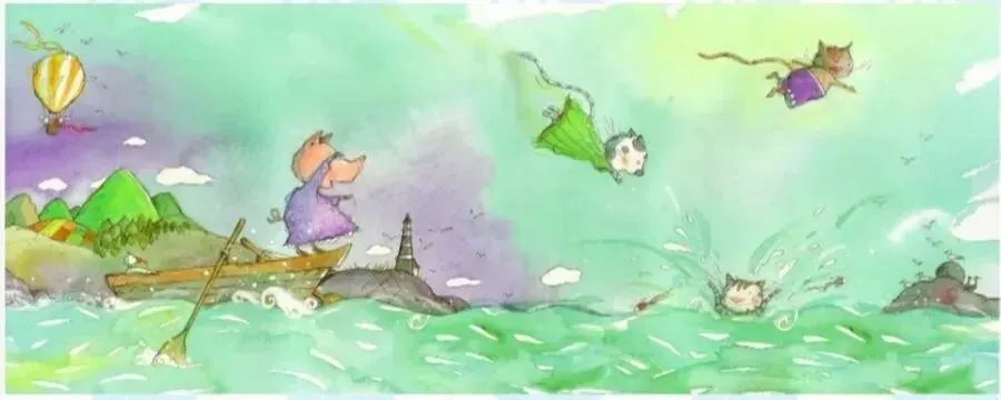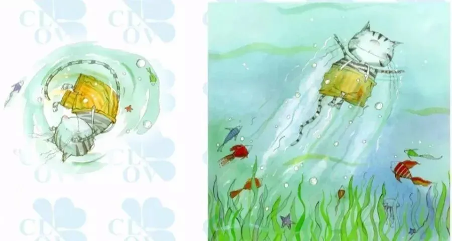 波西亚、八哥和壁球都急坏了。"卡兰巴",他们呼喊着。"卡兰巴"!突然卡兰巴的脑袋从海水里冒了出来,"我在这儿",它喊到,看着他向小船游过来,两位堂兄弟吃惊极了,"你在干什么"?壁球叫起来。"猫可不会游泳,大家都知道这一点"。"可是我会游啊"。卡兰巴说。