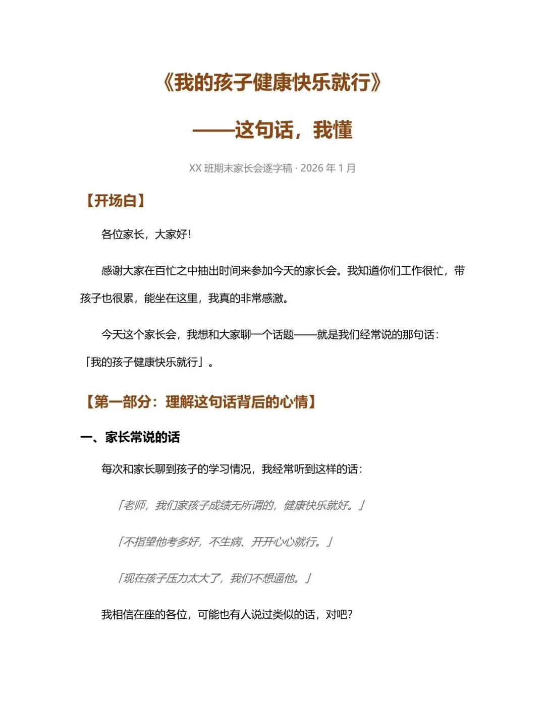 🍄1-6年级家长会发言稿+课件🍄