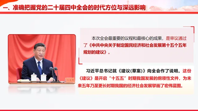 >【PPT+讲稿】深刻领会四中全会精神 推动“十五五”时期高质量发展(69页,高端大气,版面精致)