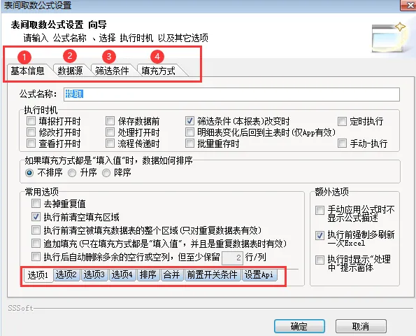 先新增一个表间公式,总体四大步:设定基本信息;选数据源;设定筛选条件;设置数据填充方式