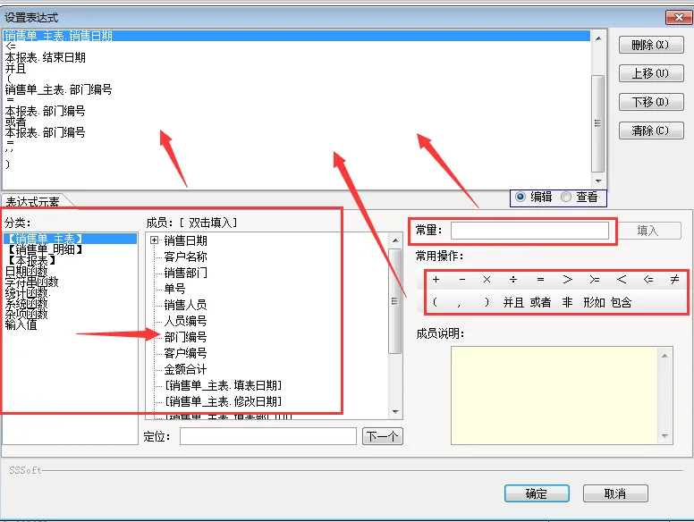 筛选条件录入窗口,是一个很重要的窗口结构,Myexcel中所有需要写表达式或填充数据的地方都会用到这种结构的窗口。