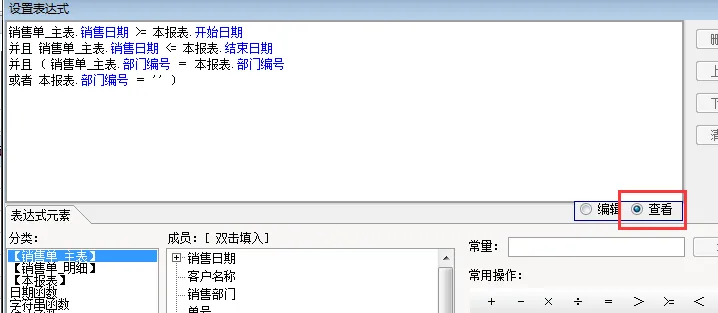 这样不但可以查询任一个部门的销售数据,当本报表的部门编号为空时候,还可以查询所有部门的销售数据。