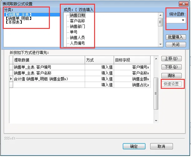 在填充时,为了快速录入,还有一个“快速设置”的窗口,熟练使用后,可以快速地录入填充数据。