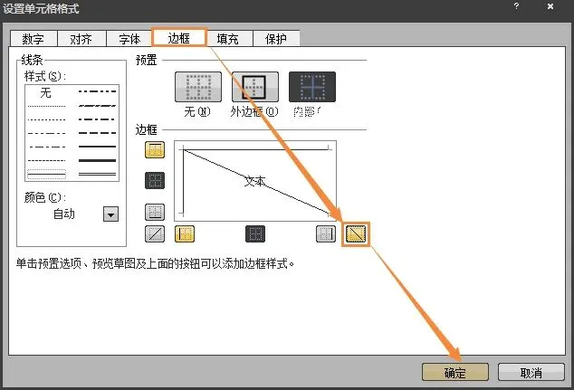 3、在弹出菜单中选【边框】选项卡,按照下图进行格式选择,单击确定。