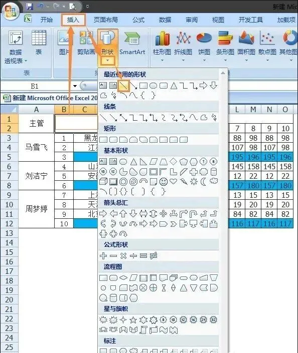 9、如图,选中【插入】→【形状】→【直线】图标按钮。