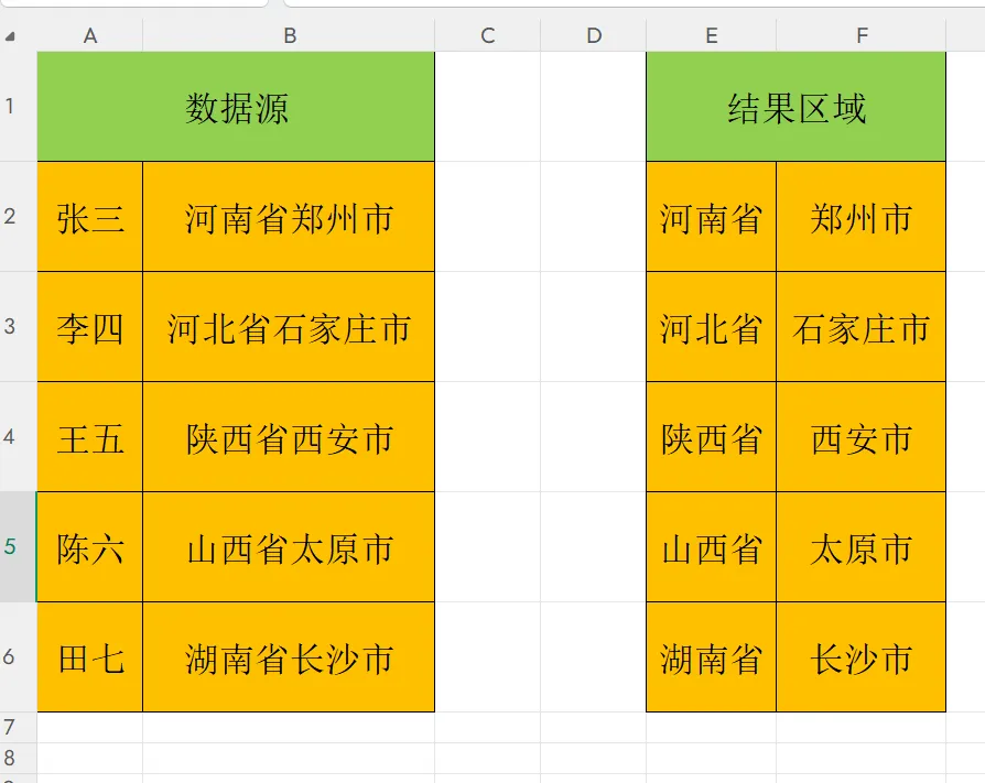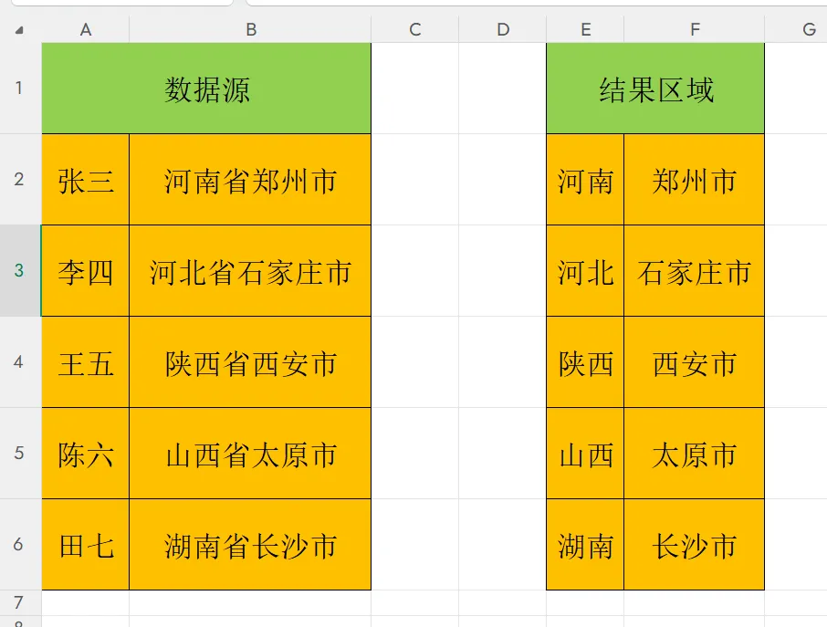 ✅适用场景:数据含固定关键词(如省/市/区、公司/部门、品牌/型号)