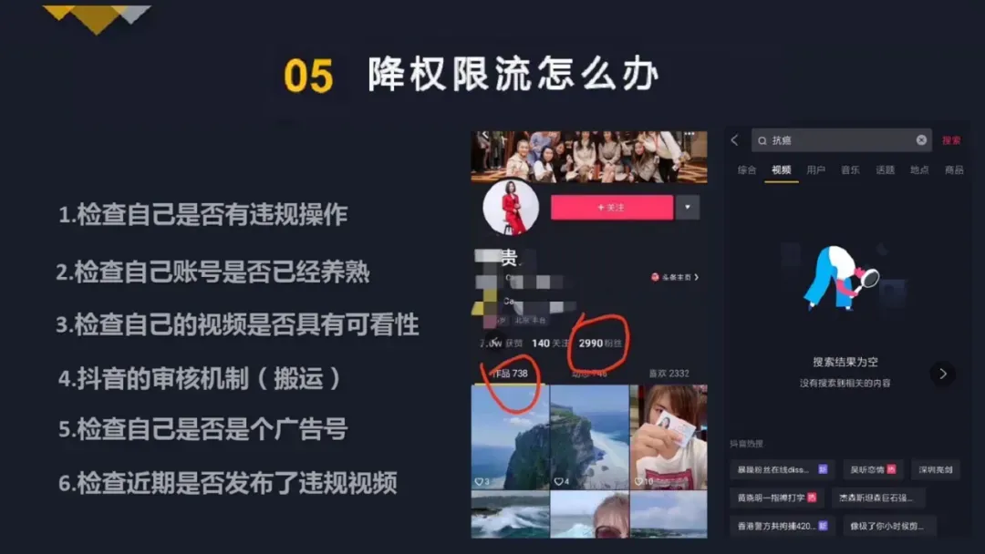 这篇文章包含了抖音审核机制、分发机制、权重等级判断、完播率提高攻略、拍摄设备及技巧、抖音蓝v认证、账号降权限流、矩阵玩法、直播人气提升等知识。