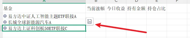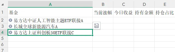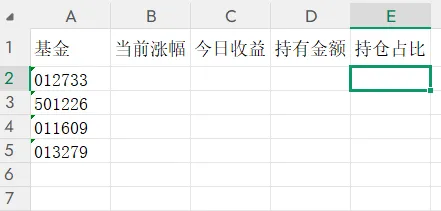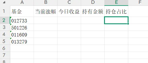 2、在第一列输入基金代码